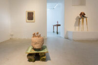 With Yala Juchmann and Konrad Mühe Yala Juchmann’s Gelegenheit und Praxis: Von der Hand in den Mund (2021) addresses infrastructures of artistic work. In her assemblage, framed by a screen made of construction fence elements, Juchmann presents her own works from past years, as well as the work Löffel als Genoss:innen, by the artist Cornelia